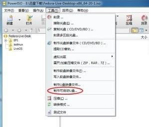2、打開(kāi)安裝完成后的PowerISO,在軟件菜單欄中點(diǎn)擊打開(kāi),加載Fedora鏡像,如圖: