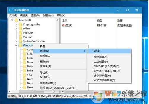 4、按下WIN+R,打開注冊表,定位到:HKEY_LOCAL_MACHINE\SOFTWARE\Policies\Microsoft\Windows\