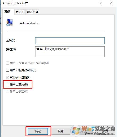 3、把“帳戶已禁用”的復(fù)選框取消,然后點(diǎn)確定;