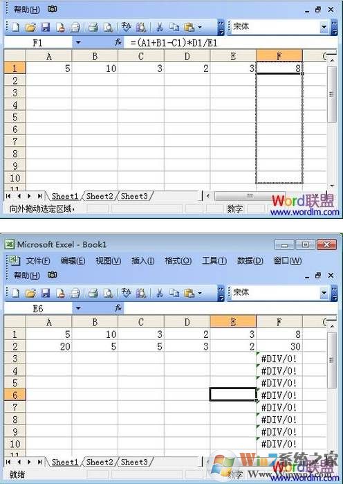 ?、廴缓笠来卧贏1、B1、C1、D1、E1中輸入需要運算的數(shù)據(jù)。