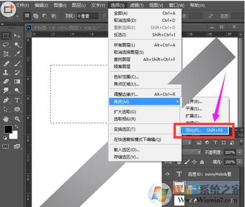 Photoshop中的羽化快捷鍵是Shift+F6。當然,還可以在菜單欄選擇—修改—羽化,也可以找到羽化命令。