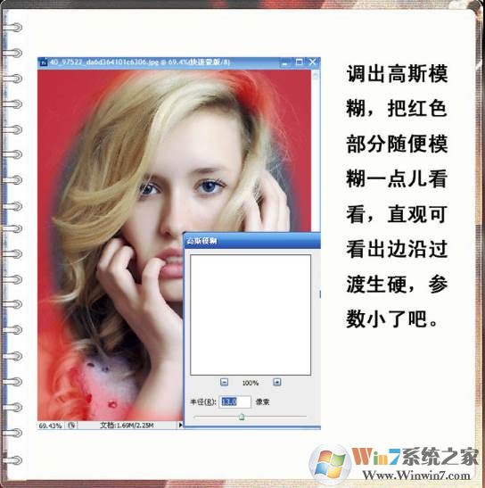 3、在濾鏡里,使用高斯模糊,看下編輯框,模糊的效果是不是很直觀,調(diào)整到你滿意為止。