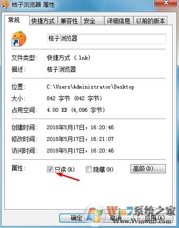 這是由于快捷方式被惡意的添加了“只讀屬性”,只讀屬性顧名思義就是只能讀不能改,解決方法也很簡(jiǎn)單。