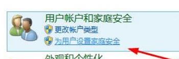 2、然后點擊“用戶賬戶和家庭安全”——“為用戶設置家庭安全”,如圖: