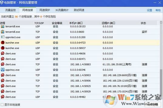 2、點(diǎn)擊流量監(jiān)控之后就可以看到正在運(yùn)行的劍靈IP,如圖: