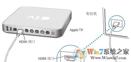 1、將APPLE TV用高清數(shù)據(jù)線連接到電視上面,電視必須藥有hdmi高清接口;