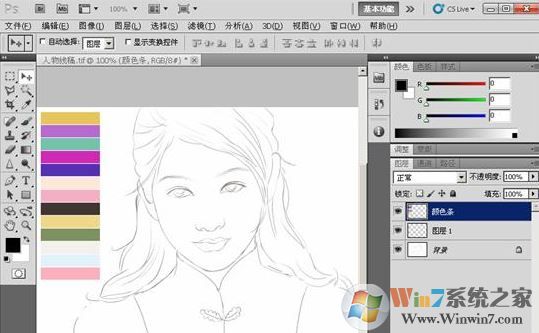 (1)首先執(zhí)行“文件”→“打開”命令,將素材“人物線稿.tif”文件打開。