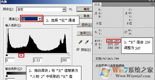 提示:在拖動(dòng)滑塊時(shí)要觀察信息調(diào)板中RGB值的變化。