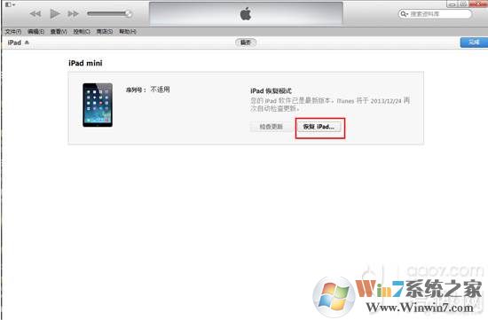 開(kāi)始:將你的ipad平板進(jìn)入開(kāi)機(jī)狀態(tài),通過(guò)數(shù)據(jù)線連接電腦,打開(kāi)PC端 iTunes,白蘋(píng)果狀態(tài)的設(shè)備可以直接進(jìn)入第一步。