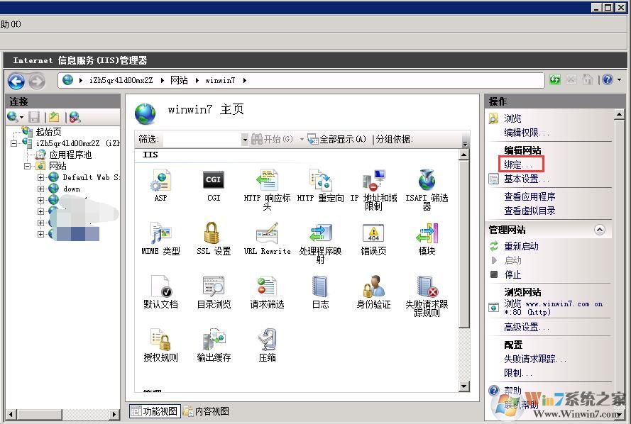 2、選中你要綁定的網(wǎng)站,然后點擊右邊的“綁定”按鈕;
