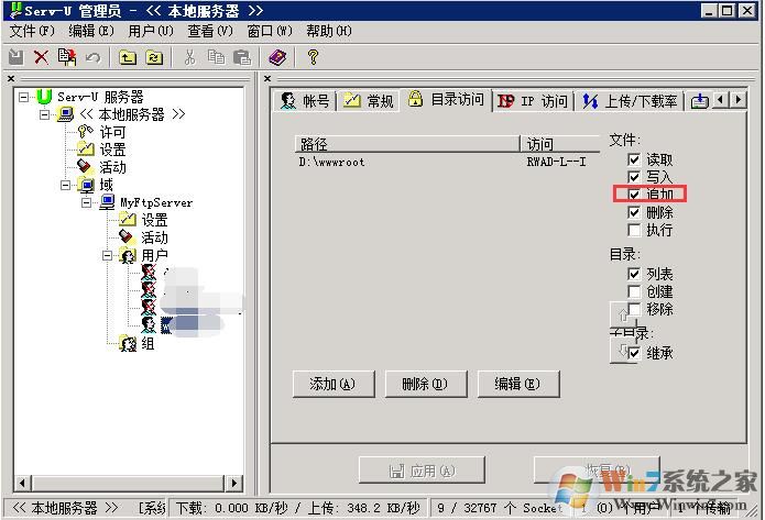 3、然后在文件處,勾選追加即可。如果不能刪除的朋友還要勾選刪除權(quán)限。