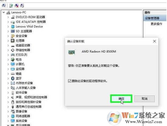 4、勾選刪除此設(shè)備的驅(qū)動(dòng)程序軟件選項(xiàng),點(diǎn)確定即可。