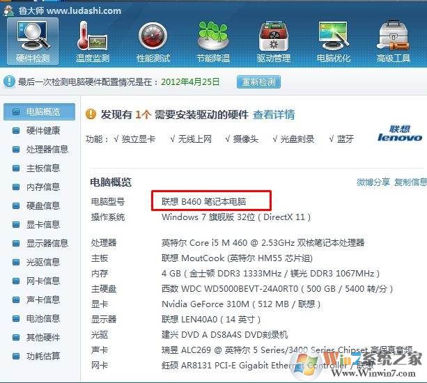 1、在電腦上安裝一個(gè)魯大師軟件,可以檢測(cè)電腦型號(hào)