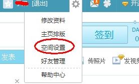 2、進(jìn)入到空間主頁(yè)面后,點(diǎn)擊下圖中的設(shè)置按鈕,在彈出菜單中,選擇“空間設(shè)置”,見(jiàn)下圖: