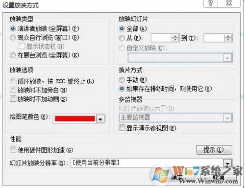 1、執(zhí)行“幻燈片放映→設(shè)置放映方式”命令,打開“設(shè)置放映方式”對話框。