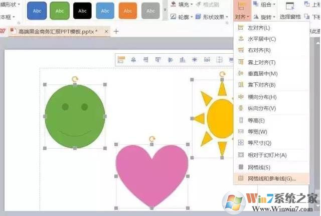 比如對齊幾張圖片,不用手動(dòng)地一點(diǎn)一點(diǎn)去對啦,直接用下圖的對齊工具,一鍵搞定。