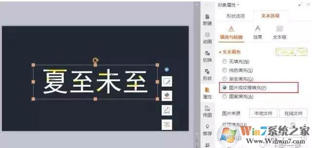 ③然后選擇文本的填充方式為【圖片或者文理填充】