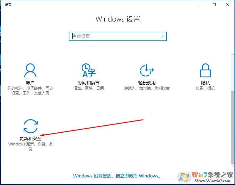 2、進(jìn)入更新和安全選項(xiàng)