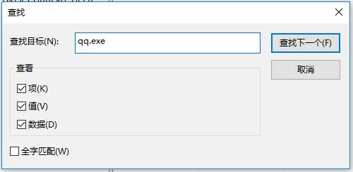 3、輸入要查找的數(shù)據(jù)名,如軟件名稱,軟件程序名,查找到后刪除;