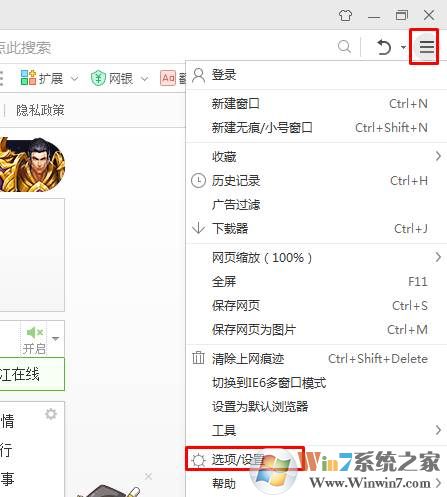 1、打開360瀏覽器,然后在右上角點(diǎn)擊——設(shè)置,如下圖