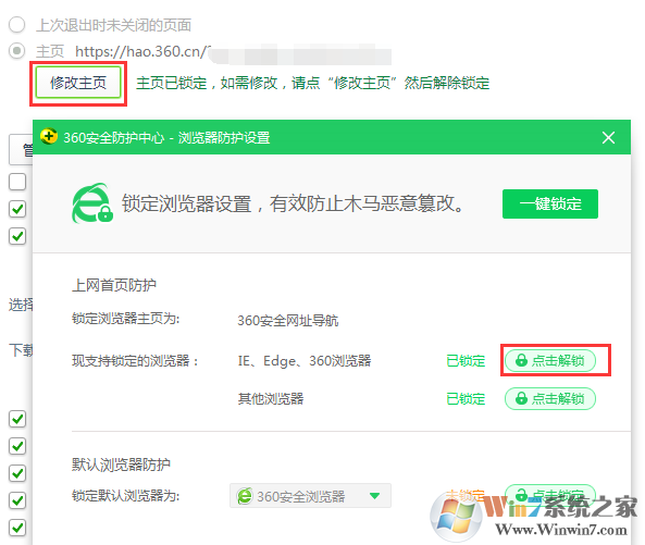 2、在主頁設(shè)置處,點(diǎn)擊修改主頁,然后解除鎖定(安裝了360的會(huì)鎖定),解鎖之后再輸入東方財(cái)富網(wǎng)的網(wǎng)址鎖定即可。