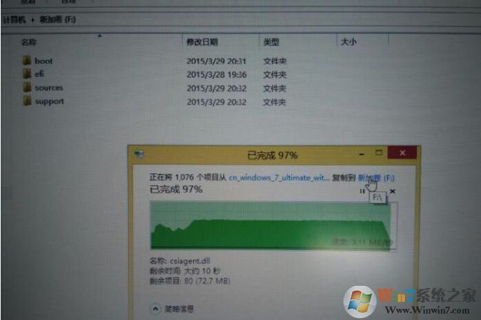 2、把Win7安裝鏡像解壓到磁盤根目錄,以下放到F盤;