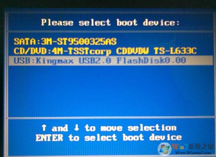 開機(jī)后按 ESC 鍵,就可以進(jìn)入以下界面,選擇USB開頭的U盤就可以進(jìn)入U(xiǎn)盤Pe系統(tǒng)了。