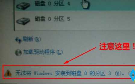 錯誤提示1、無法將windows安裝到磁盤0的分區(qū)