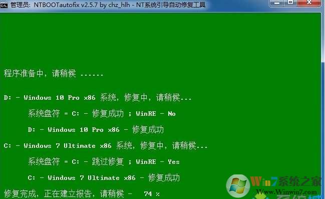 6、開始修復(fù)雙系統(tǒng)啟動菜單,修復(fù)完成后,關(guān)閉當(dāng)前窗口,重啟系統(tǒng);