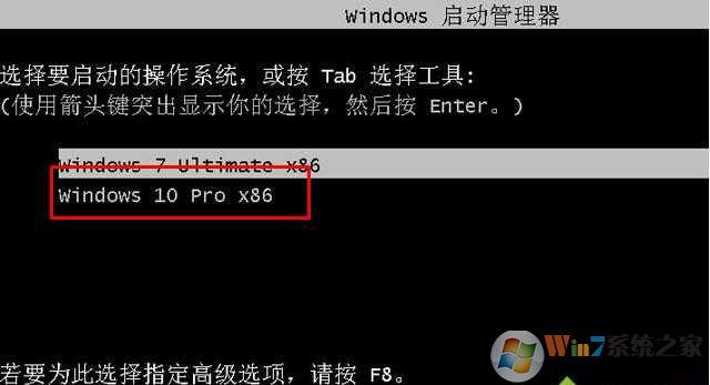 Windows7和Windows10兩個操作系統(tǒng)啟動菜單,我們按鍵盤上下鍵選擇到Win10回車進(jìn)入;