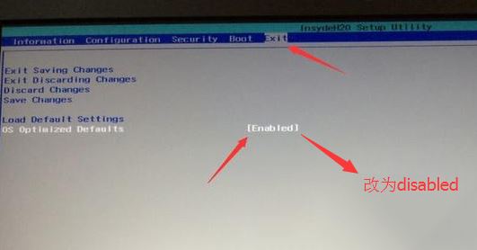 2、轉(zhuǎn)到Exit,把OS Optimized Defaults設(shè)置為Disabled或Other OS,如圖: