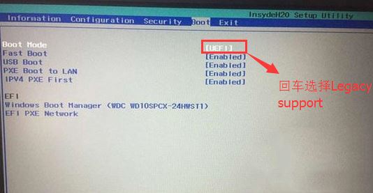 4、切換到Boot,把Boot Mode從UEFI改成Legacy Support,如圖: