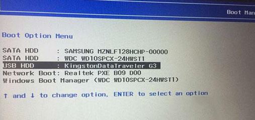 6、插入制作好的U盤啟動盤,重啟按F12或FN+F12調(diào)出啟動管理對話框,選擇USB HDD識別到U盤啟動進(jìn)入PE,回車;