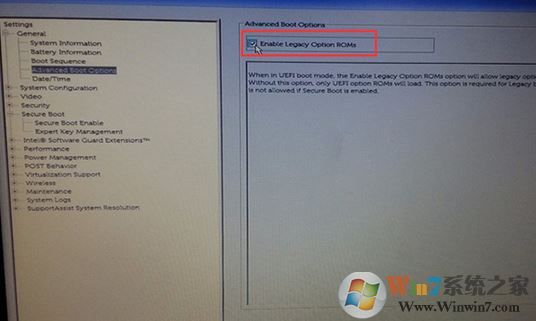 2、切換到Advanced Boot Options將右邊的Enable legacy option roms選項(xiàng)打勾,如下圖所示;
