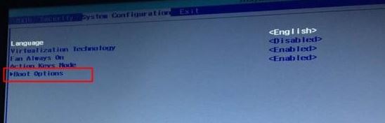 2、移動(dòng)鍵盤(pán)右鍵頭到System Configuration下,選擇Boot Options,按回車鍵進(jìn)入設(shè)置;