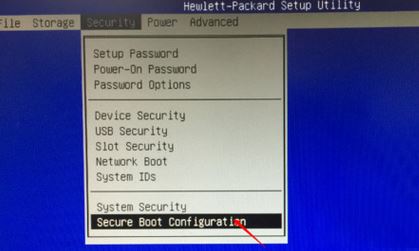 1、開機一直按F10進入BIOS,如果沒反應則啟動時按ESC,出現以下界面后,再按F10進入BIOS,切換到Security選項--Secure Boot Configuration點擊回車鍵,如果彈出紅色界面,請按F10接受;