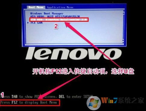5、保存設(shè)置后自動重啟進(jìn)入LOGO畫面時,一直按F12,選擇U盤啟動,如下圖所示;