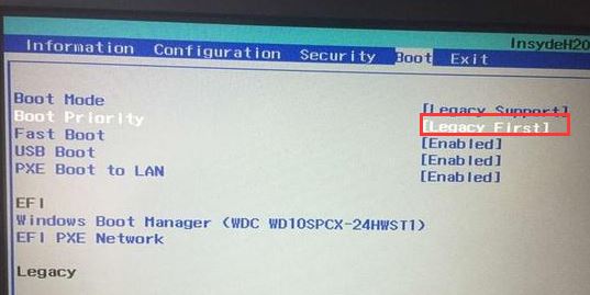 5、再把Boot Priority設(shè)置成Legacy First,按F10彈出窗口選擇yes回車,如截圖: