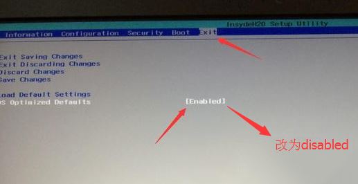 2、轉(zhuǎn)到Exit,把OS Optimized Defaults設(shè)置為Disabled或Other OS;