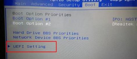 2、轉(zhuǎn)到Boot界面,選擇UEFI Setting回車;
