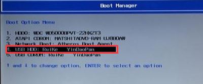 5、插入U盤啟動盤,重啟時不停的按下f12,打開Boot Manager,選擇USB HDD回車從U盤啟動