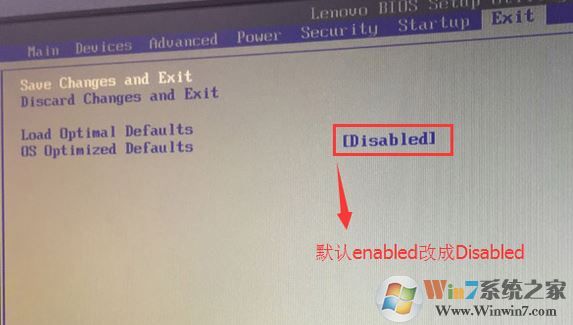 2、轉(zhuǎn)到Exit,把OS Optimized Defaults設(shè)置為Disabled,如圖: