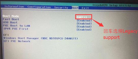 4、切換到Boot,把Boot Mode從UEFI改成Legacy Support;