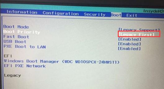 5、再把Boot Priority設(shè)置成Legacy First,按F10彈出窗口選擇yes回車;