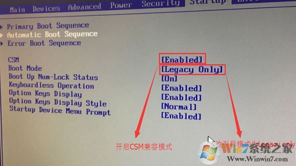 3、切換到Boot,把Boot Mode從UEFI改成Legacy only引導模式,再把csm默認disabled改成enabled,開啟兼容模式,選擇F10保存設(shè)置,在彈出的選項中選擇YES;
