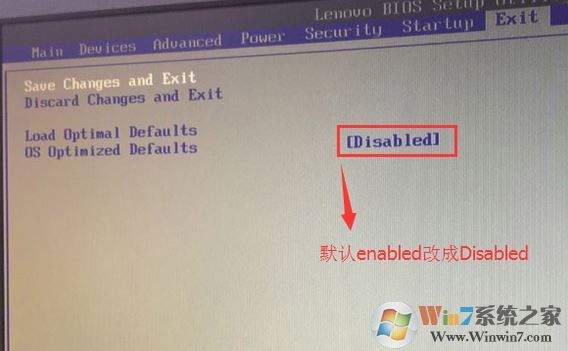 2、轉(zhuǎn)到Exit,把OS Optimized Defaults設(shè)置為Disabled;