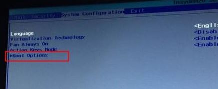 2、移動(dòng)鍵盤右鍵頭到System Configuration下,選擇Boot Options,按回車鍵進(jìn)入設(shè)置,如圖: