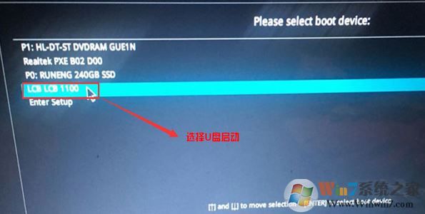 4、插入U(xiǎn)盤啟動(dòng)盤,重啟按ESC選擇識別到U盤啟動(dòng)項(xiàng)