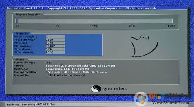 3、接下來(lái)開(kāi)始GHOST恢復(fù)過(guò)程,恢復(fù)完成會(huì)重新啟動(dòng)電腦。