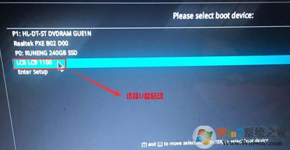 4、插入U(xiǎn)盤啟動(dòng)盤,重啟按ESC選擇識(shí)別到U盤啟動(dòng)項(xiàng),回車;